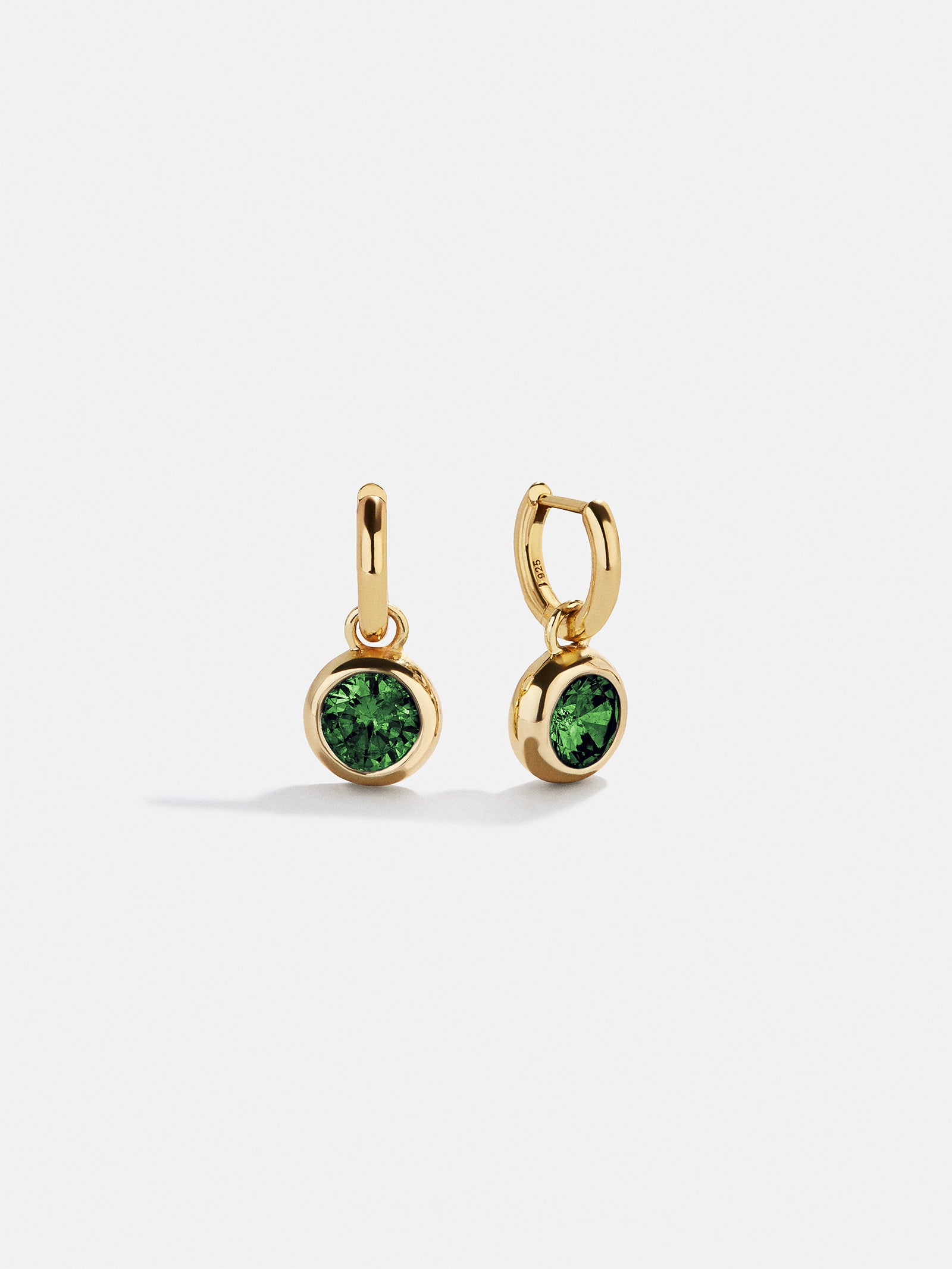 14K Gold Birthstone Huggie Earrings - Emerald