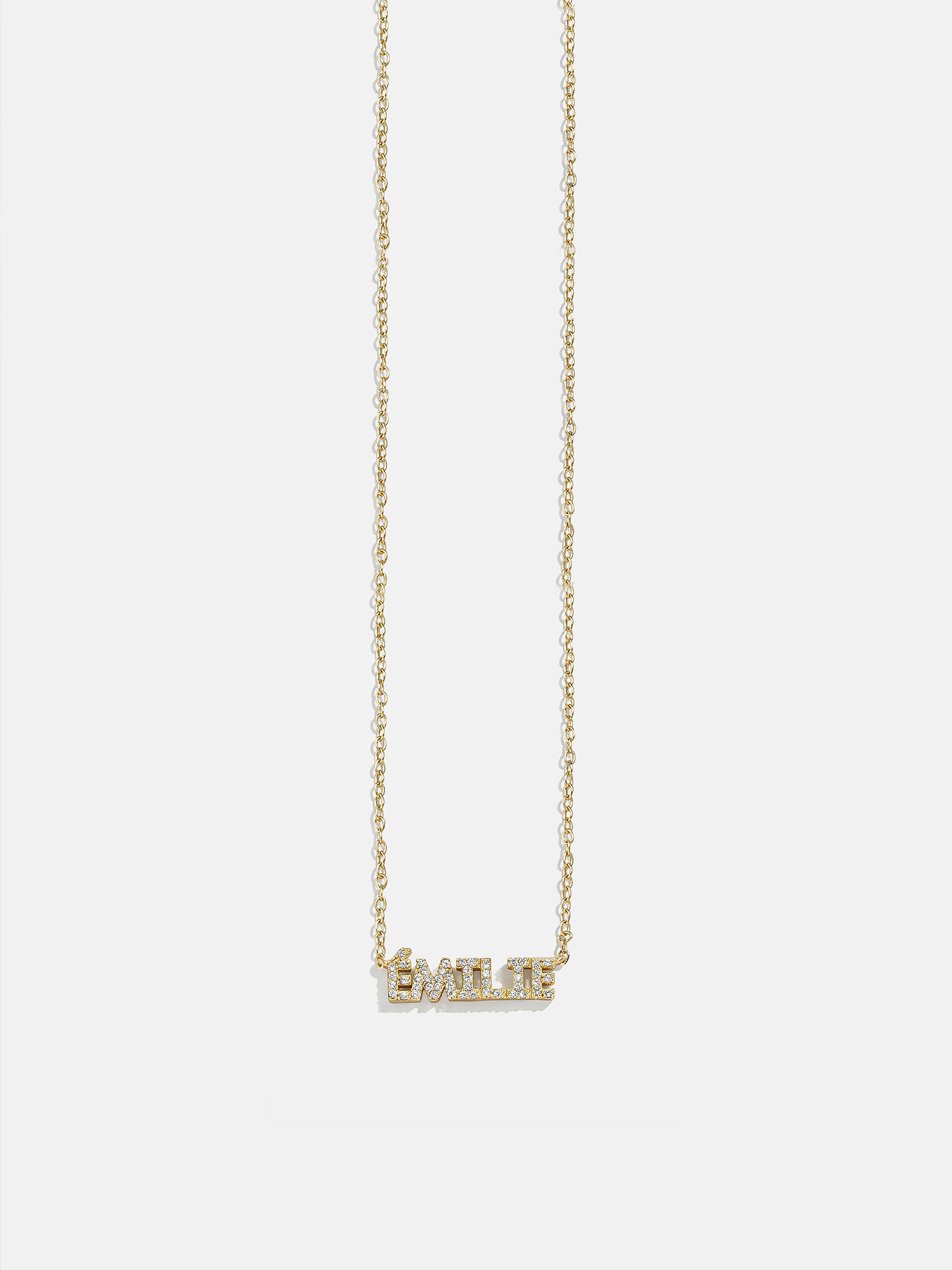 18K Gold Birthstone Custom Nameplate Necklace - Crystal